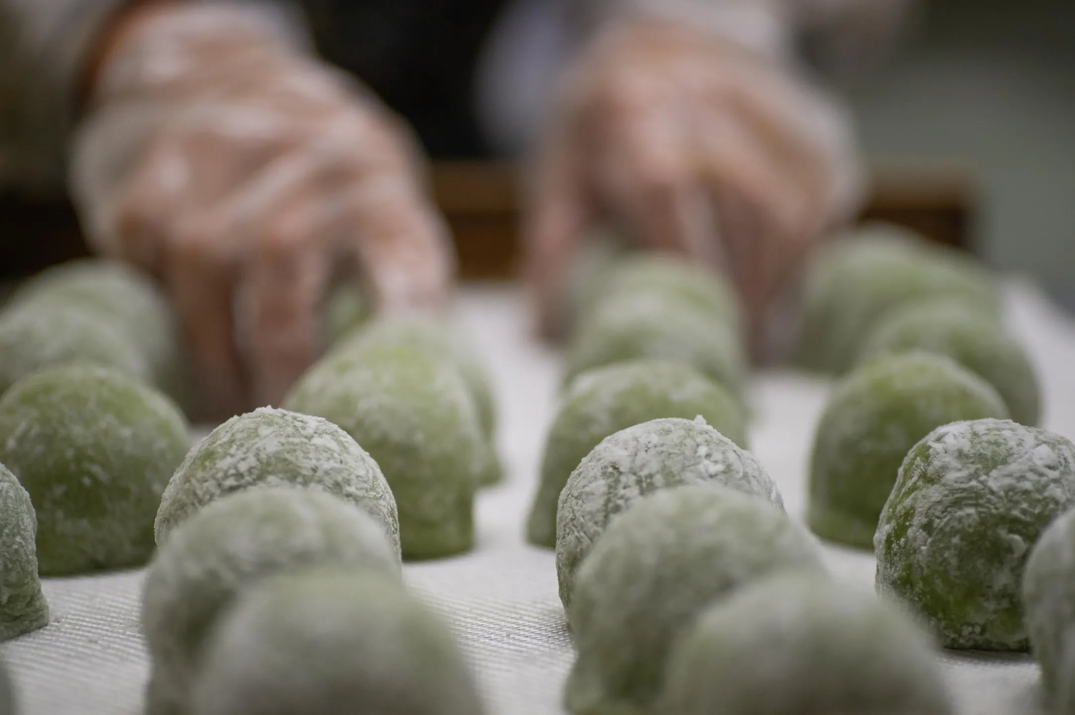 手づくり、手で包餡して手で丸める