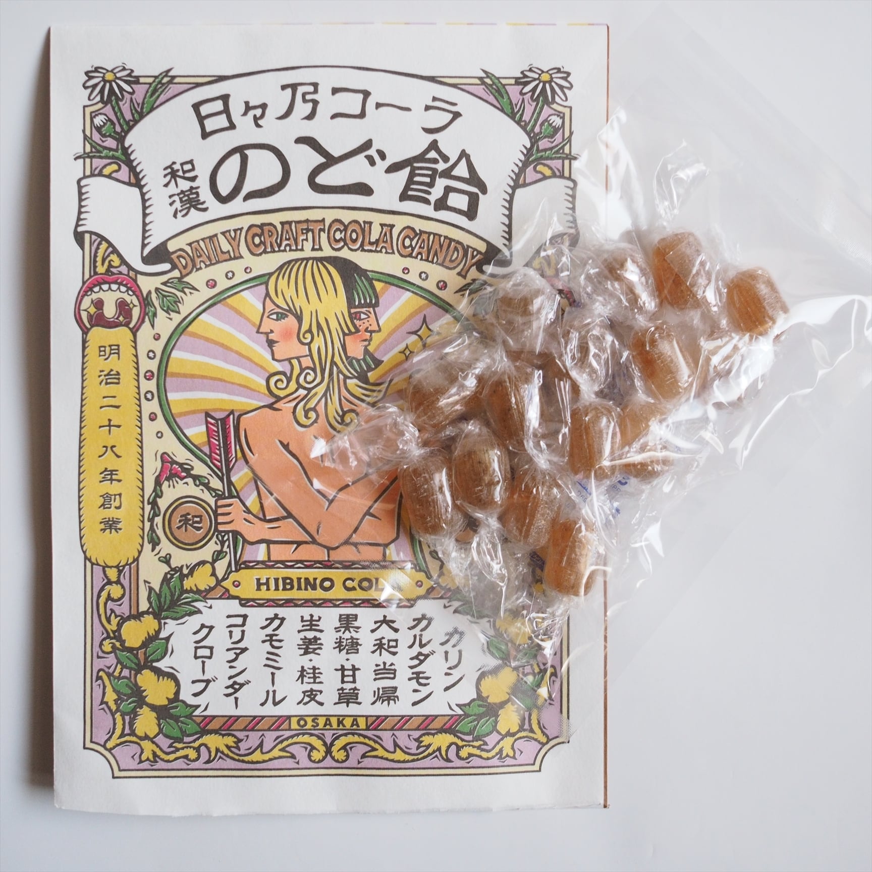 2021年の発売以来、老若男女に親しまれている日々乃コーラの味わいをのど飴にしてみました。関西に根付く「飴ちゃん」を配る文化、大切な方への贈り物にもぴったりです。