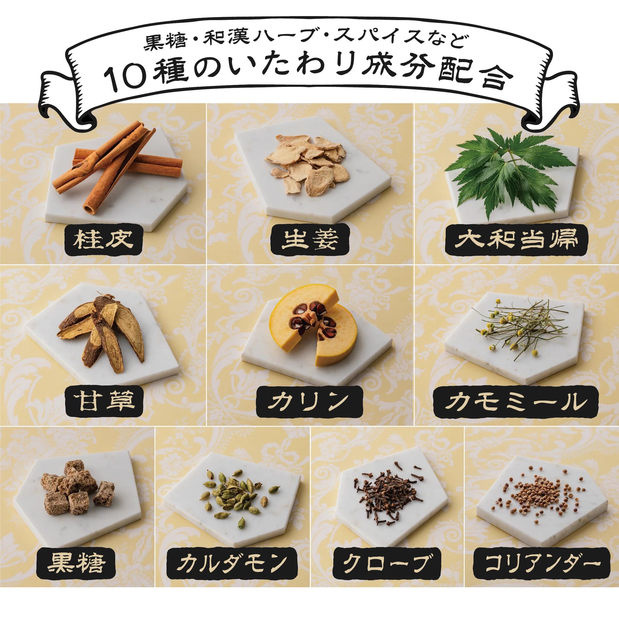 【10種のいたわり成分配合】黒糖、和漢ハーブ、スパイスなど喉をいたわる成分をブレンド