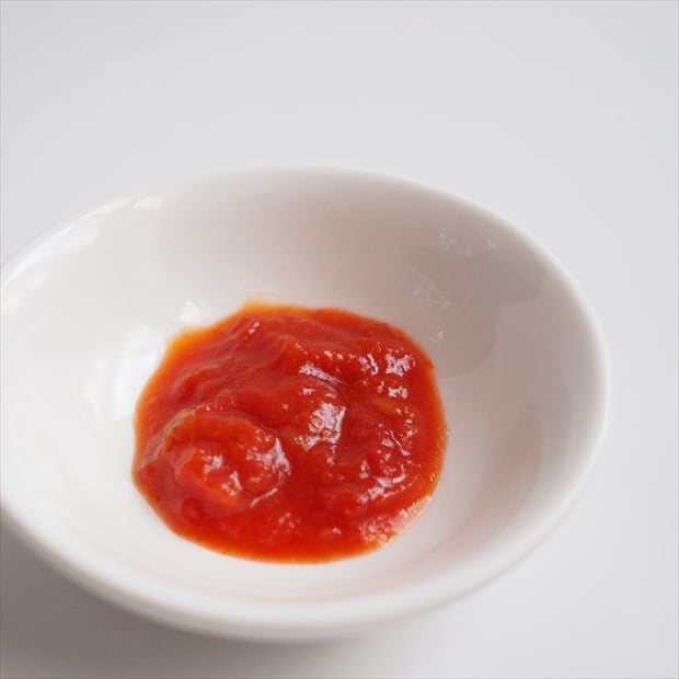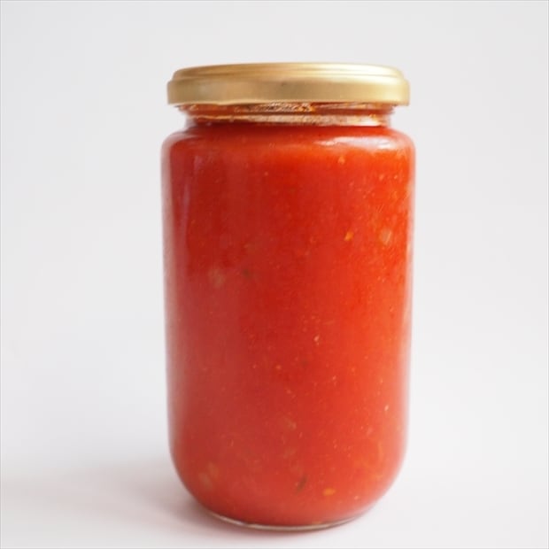 原材料:トマト・ジュースづけ、オニオンソテー,植物油脂,にんにくペースト,食塩,砂糖,チキンブイヨン・香辛料/調味料(アミノ酸等)、原材料の一部に乳成分、小麦、大豆、鶏肉含む