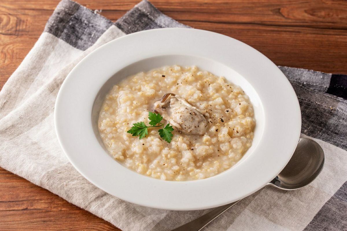 玄米(国産)、牡蠣、オニオンペースト、バター(乳成分を含む)、食塩 / 増粘多糖類